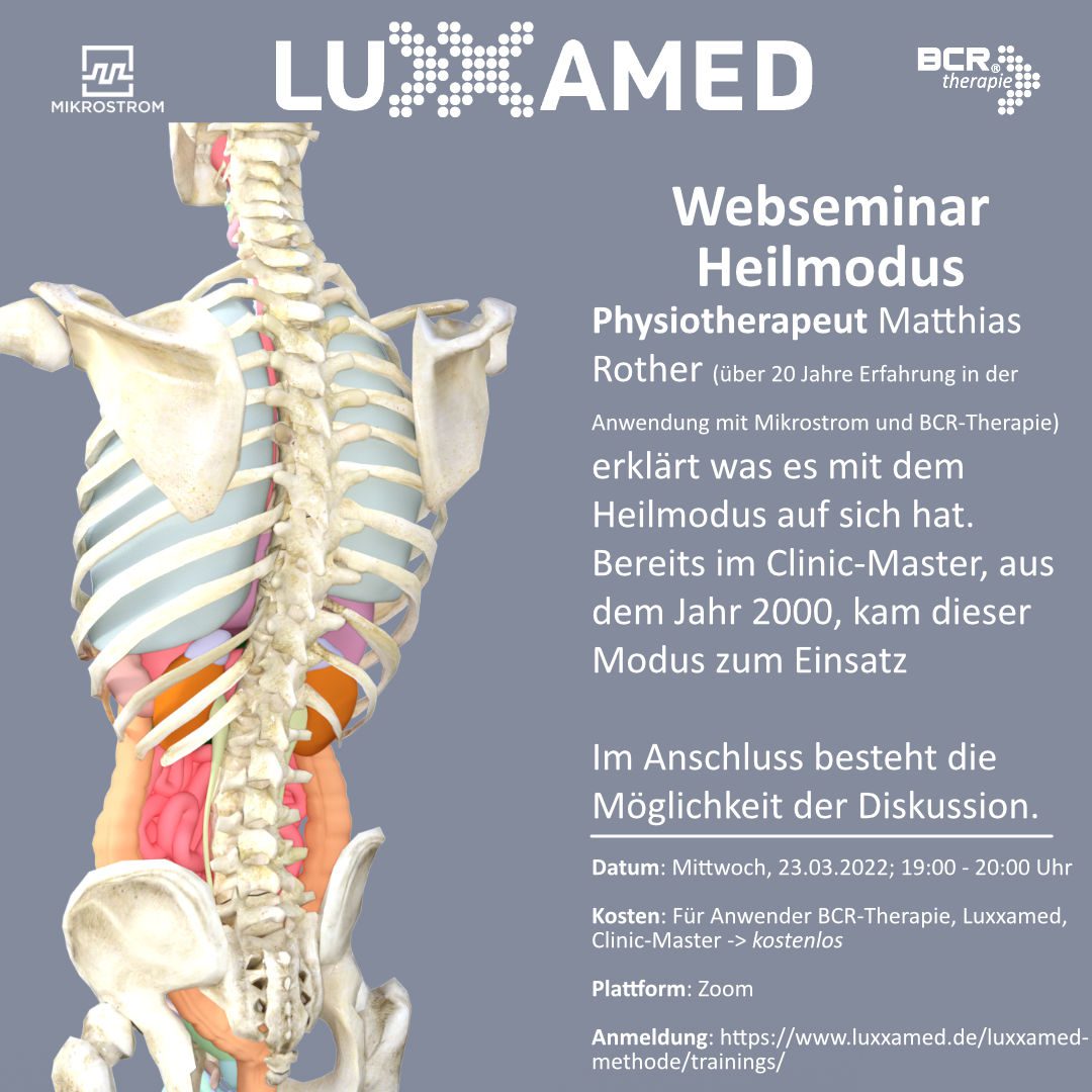 Aufzeichnung des Basis-Seminars zur Luxxamed-Mikrostromtherapie und BCR-Therapie. Dozenten: Karl-Peter van der Viefen (Osteopath D.O.); Dr. Thorsten Stüker (Physiker); Patrick Walitschek, MSc